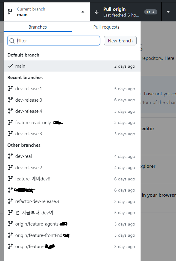 초기 업무가 마무리되고 각자가 업무를 교체하는 과정에서 새 브랜치들을 만들게 되는데, 이 과정에서 브랜치 작명 컨벤션이 잘 지켜지지 않는다거나, 브랜치 예상 작업을 초과해 다른 기능까지 중복해서 구현한다거나 등의 미흡함 있었다!