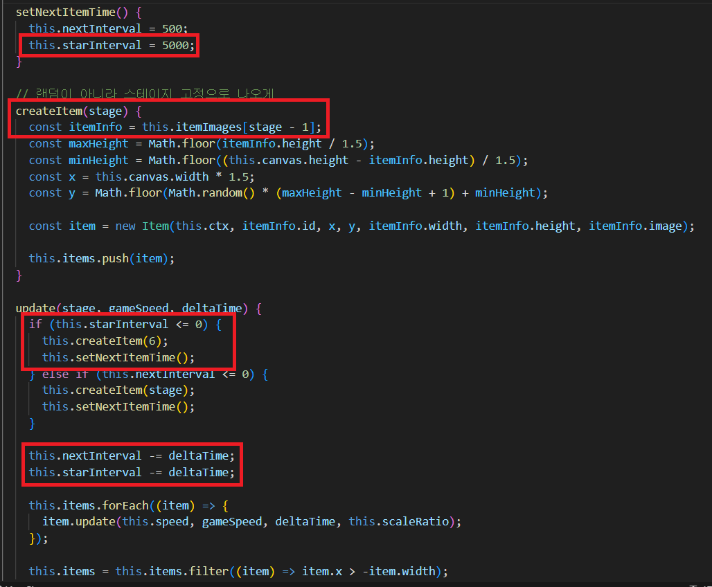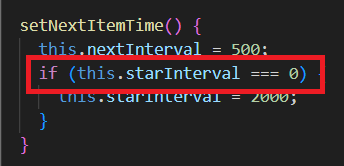 아이템이 등장하는 로직은 위 사진과 같다!! 우선 기존에 없던 별 등장 간격 관련 속성을 만들어 넣어주었고!