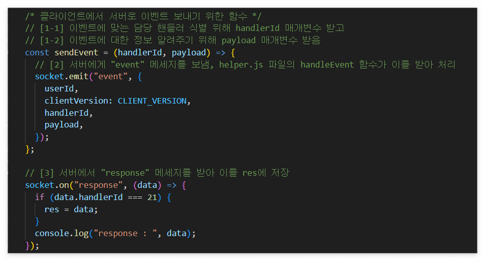 21번 핸들러가 아이템 관련 검증을 하는 핸들러! 처음엔 길이가 5로 제한된 배열인 resLog에 push하는 식으로도 시도해 봤는데 핵심적인 문제인 한 박자 밀리는 건 같아서 일단 테스트를 위해 변수에 할당하고 있다!
